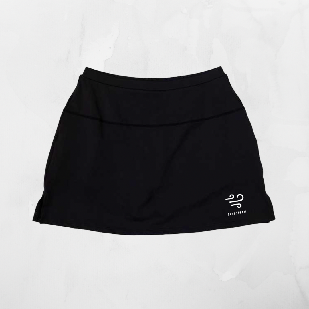 Jupe sportive avec shorts intégrés, ceinture élastique à la taille, poche pour balle, fentes latérales.