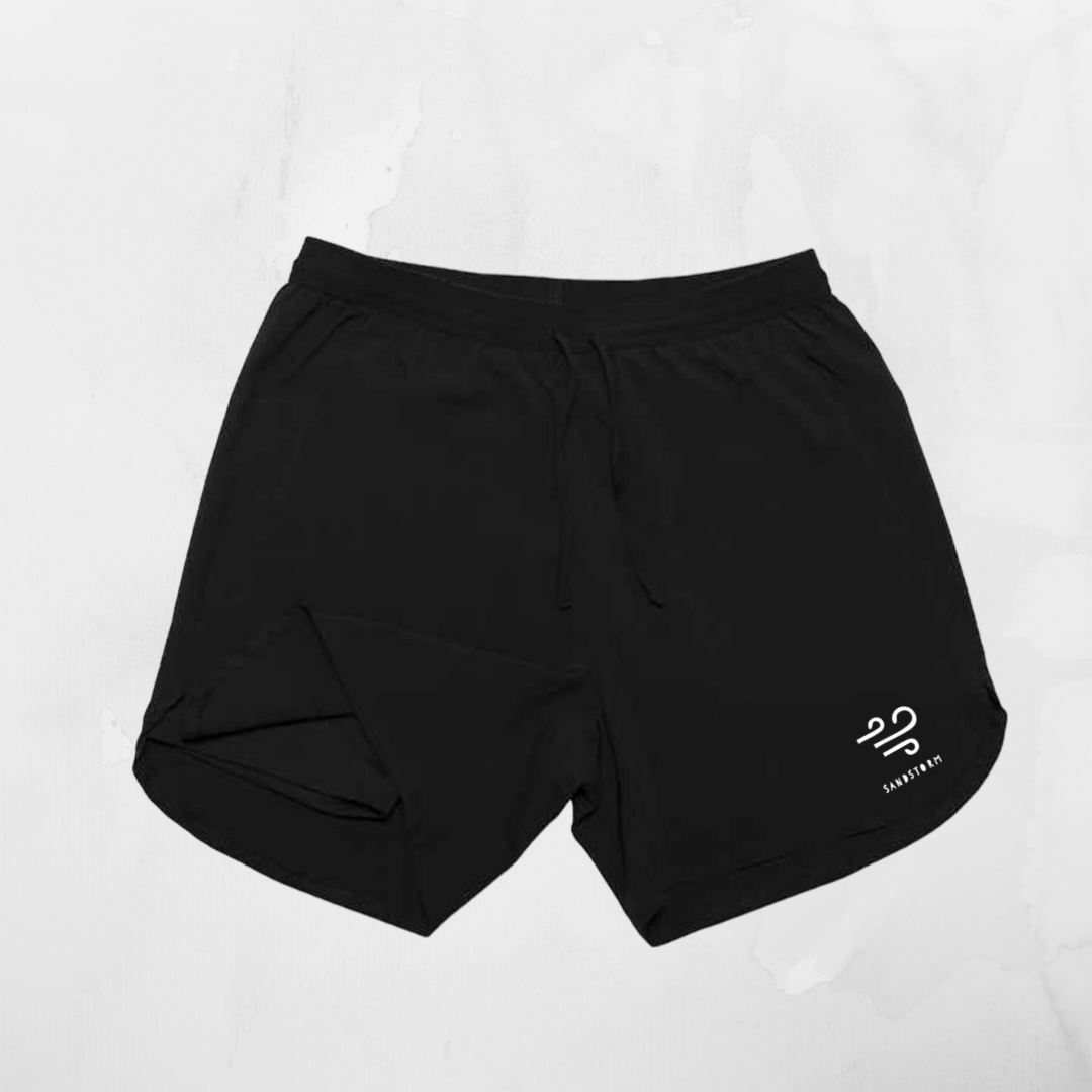 Short avec élastique à la taille avec cordon de serrage, sous-short, deux poches avant et poche arrière avec zip.